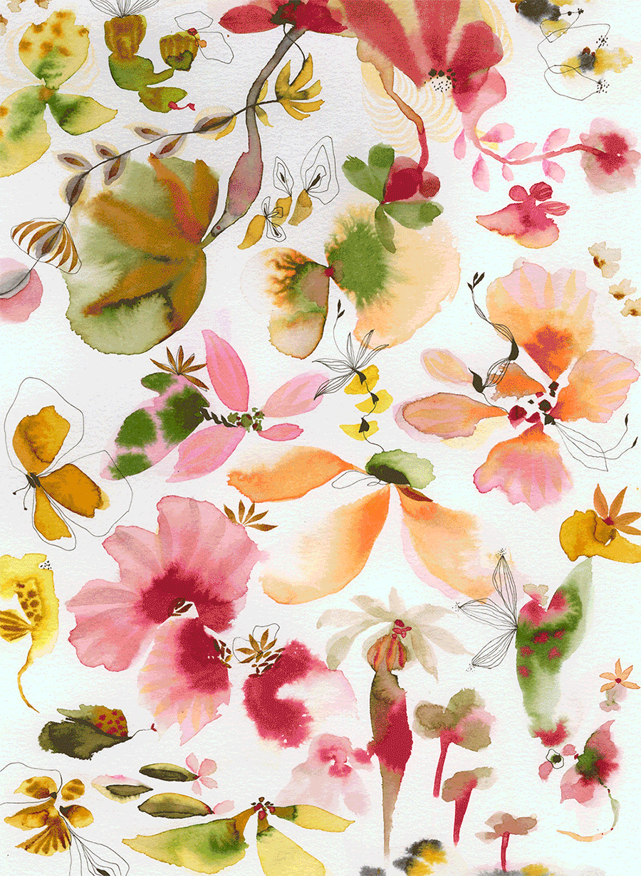 To execute the digital translation, I enlisted production designer Rachel Parker, whose technical expertise ensured the nuances of Suyao’s watercolor hand would be preserved through the repeat build and printing process. In overseeing the fine-tuning of color, composition and scale with Rachel, I was confident the final pattern met Merlette’s manufacturing standards without sacrificing the integrity of Suyao’s original work.